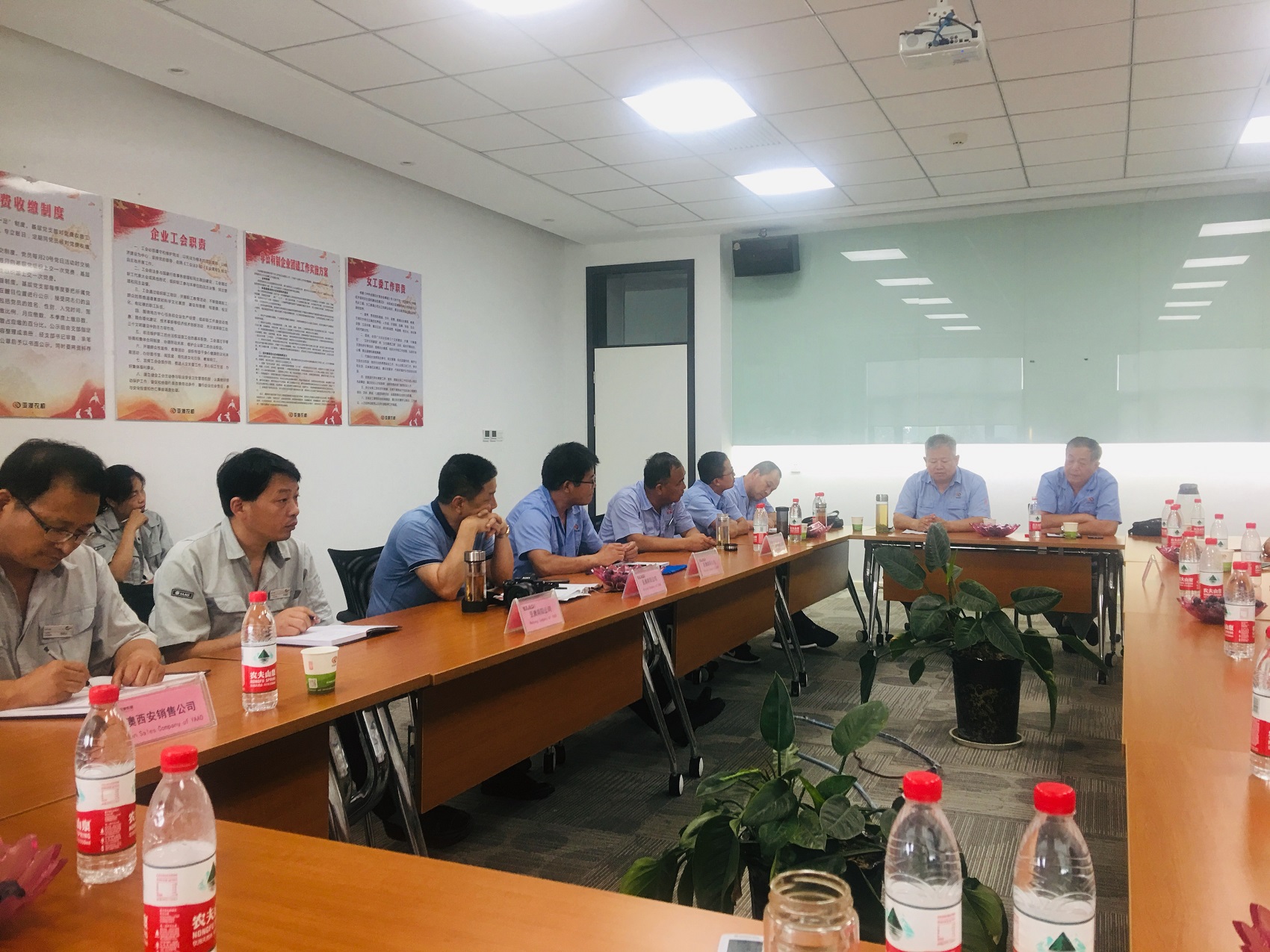 隨后,一行人來到了會(huì)議室舉行了座談會(huì),亞澳西安公司王總表示,本次來到南陽公司的目的是為了學(xué)習(xí)了解南陽工廠生產(chǎn)的產(chǎn)品,反饋目前銷售中存在的問題,同時(shí)通過對南陽工廠的理解激發(fā)一下員工對未來市場的銷售信心。