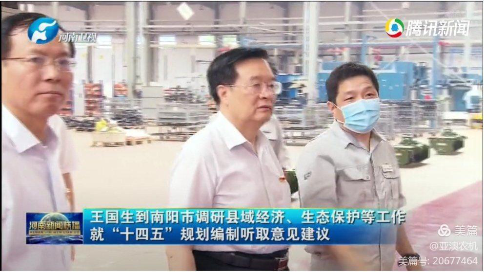 在唐河縣亞澳南陽(yáng)農(nóng)機(jī)有限責(zé)任公司,王國(guó)生仔細(xì)了解企業(yè)生產(chǎn)經(jīng)營(yíng)、訂單變化,詢(xún)問(wèn)農(nóng)機(jī)市場(chǎng)銷(xiāo)售情況,指出我省縣域面積大、人口多,蘊(yùn)藏著巨大的消費(fèi)需求,要加快推進(jìn)農(nóng)業(yè)現(xiàn)代化,挖掘消費(fèi)潛力,拓展內(nèi)需空間,在暢通國(guó)內(nèi)經(jīng)濟(jì)大循環(huán)中贏得先機(jī)。